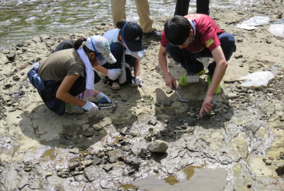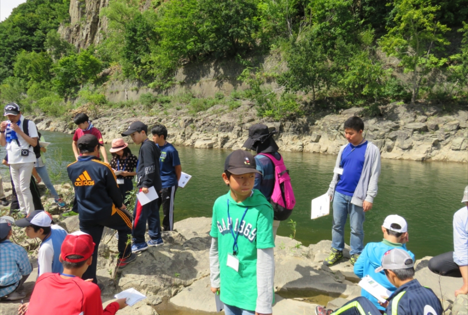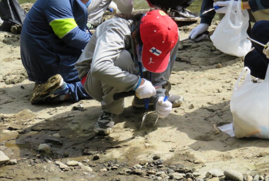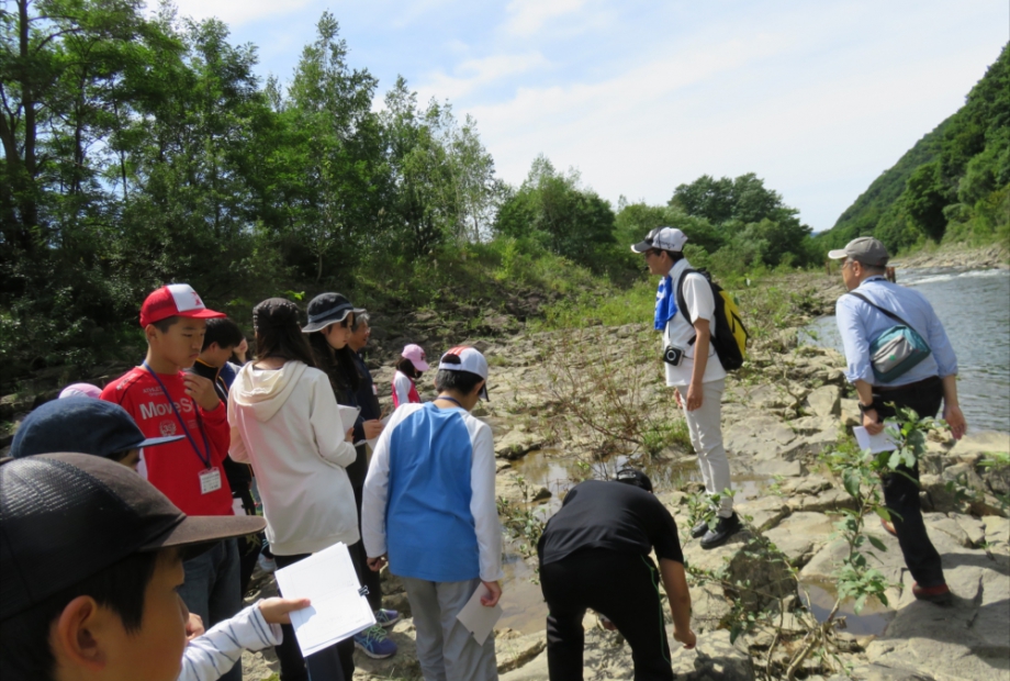 豊平川を下流から上流に遡りながら、地形、露頭や岩石の観察、化石の採取を行い、どの時代にどのような自然現象が起きたかを調べ、札幌のジオスト―リ―をつくります。