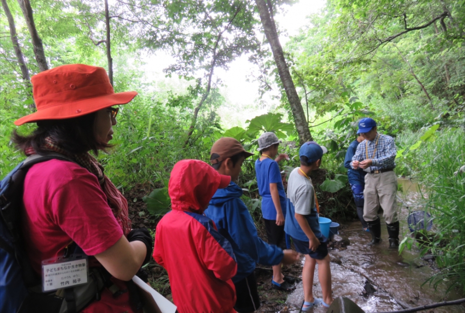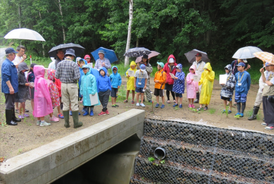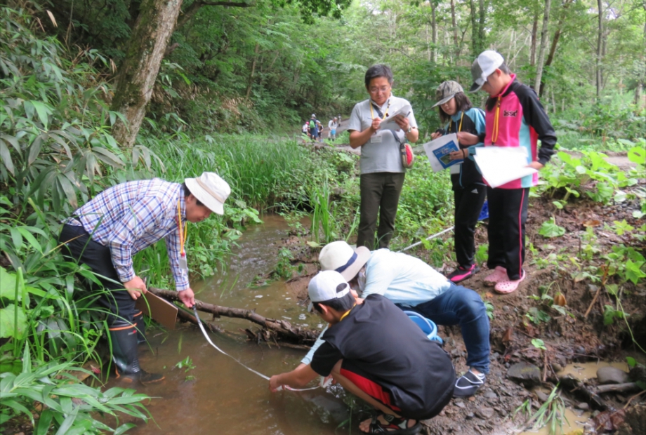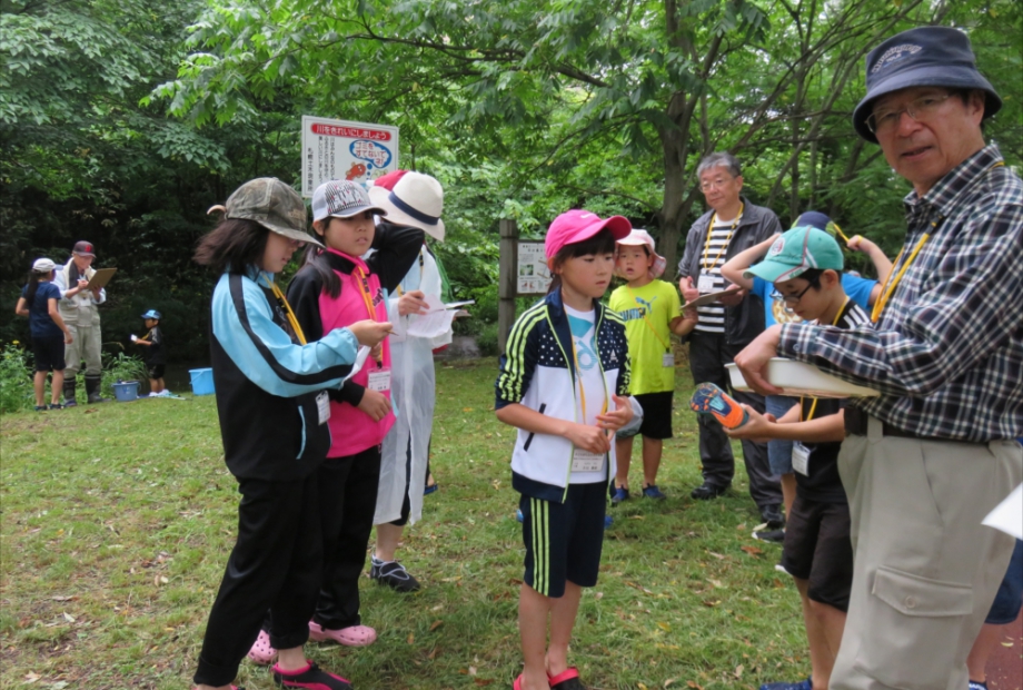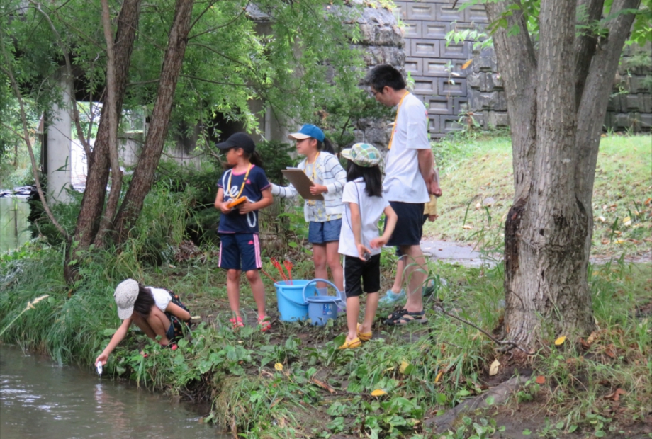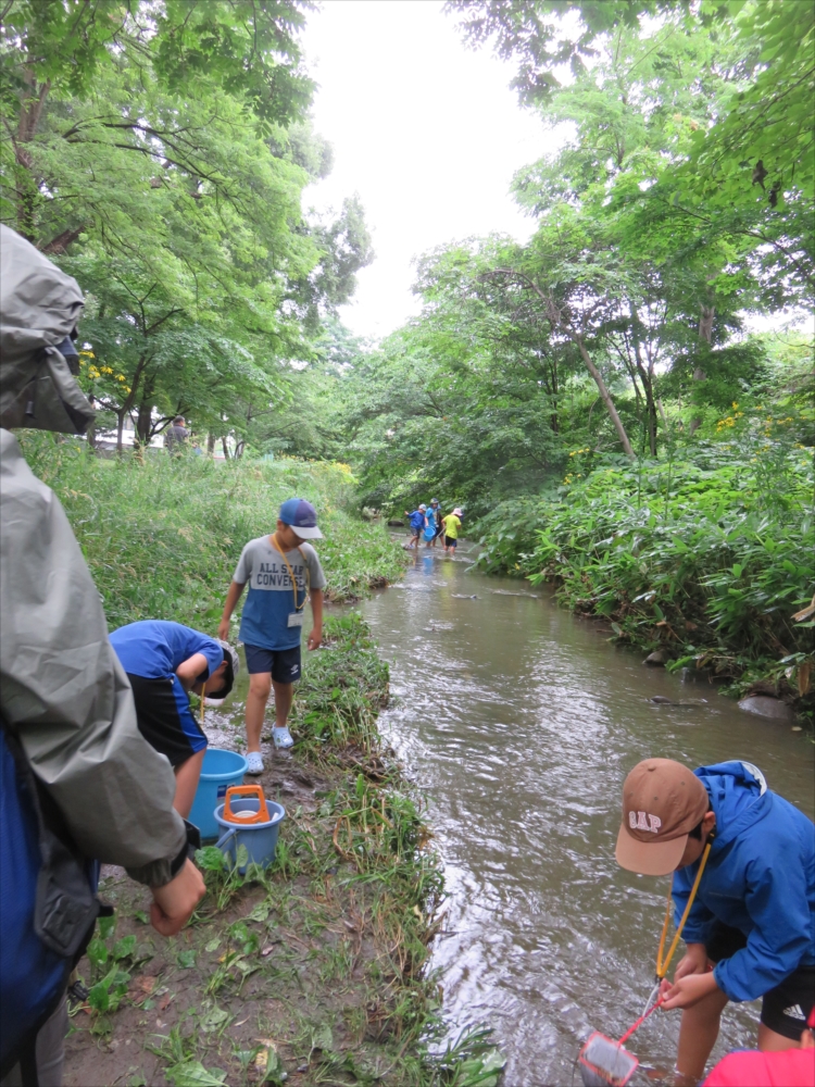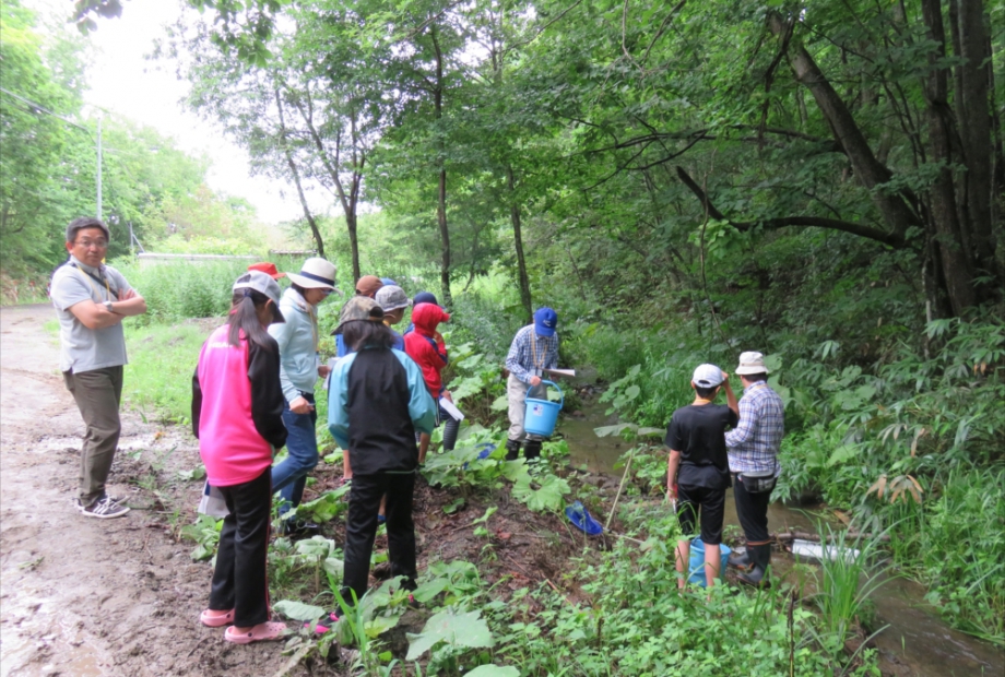サクラマスの遡上も確認されている街中を流れる精進川の源流部から下流域までを探査しながら、豊平川の支流としての「川の一生」を体験します。一般的に、河川は源流部から下流まで河川勾配も緩やかになり、水量が増すとともに川幅等が大きくなり、水質や生息生物も変化することを確認し、環境に適応して生息する生物について学びます。