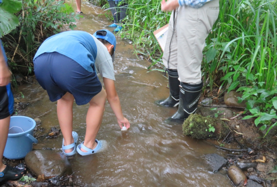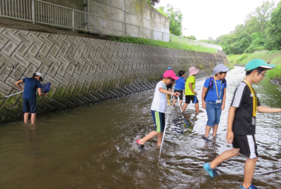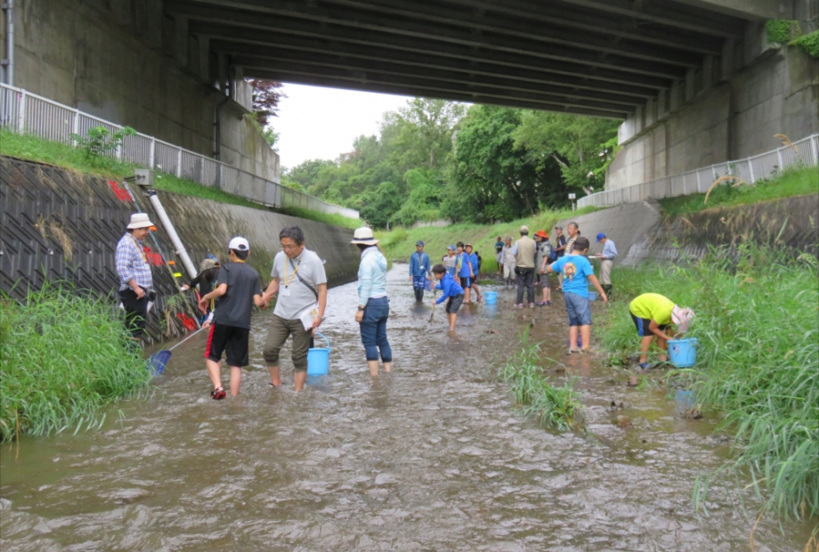 「子どもまちなか生き物塾」は、守屋 開先生を総合コーディネーターとして、精進川の流域生態系を中心に自然界の“命のつながり”の仕組みを学びます。この体験をとおして生物多様性の重要性について関心と理解を深め、かけがえのない自然を人間の知恵で後世に残せるように、何をなすべきなのか、子ども達と共に考えるプログラムです。