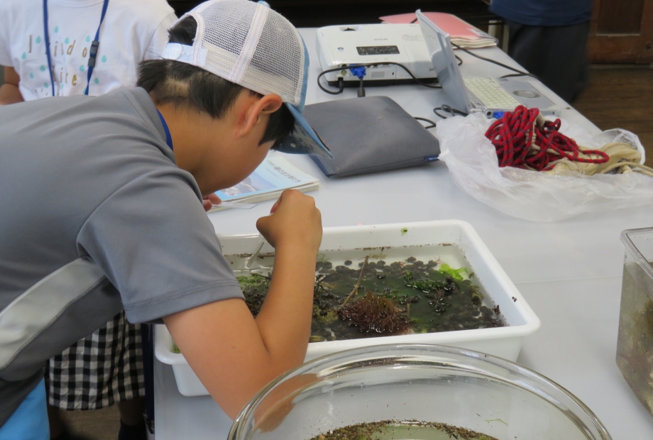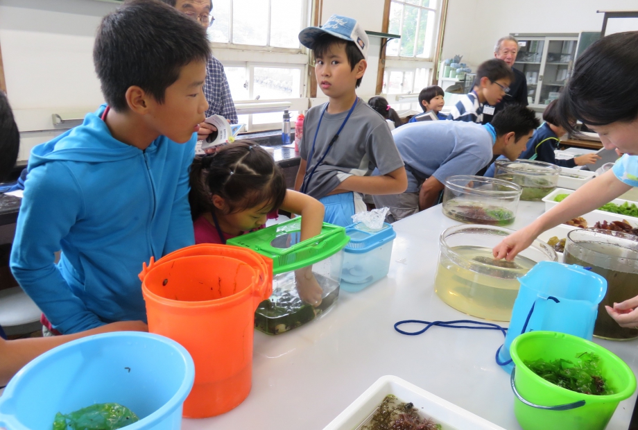 海に棲んでいる様々な生き物を観察し、採集した生物を顕微鏡等を使って観察・同定(種類を調べる)作業をしながら、この地球上にいる生物の多様性がいかに必要か視野を広げます。